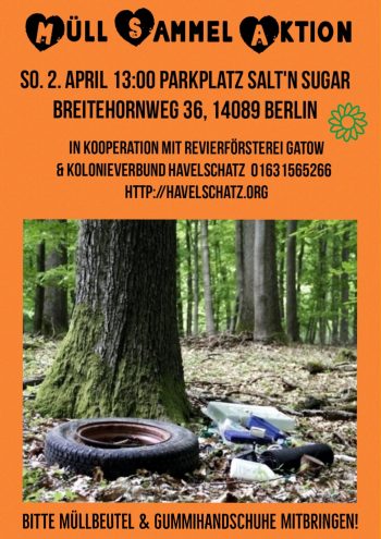 Am 2. April um 13 Uhr haben wir in Kooperation mit der Revierförsterei Gatow und dem Kolonieverbund Havelschatz unseren Wald gereinigt, damit er wieder durchatmen kann!