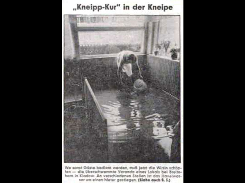 Berlin wurde zur Insel. Die „Erholung an der Havel“ (ein klassisches Naherholungsgebiert) erlangte eine ganz besondere Bedeutung – auch, wenn sie ein manches Mal durch eine über die Ufer getretene Havel gestört wurde. Die Feuerwehr sicherte die erste Reihe mit drei Lagen Sandsäcke.